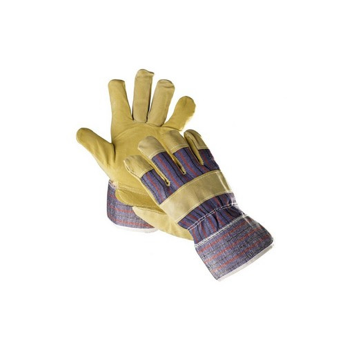 Kesztyű munkavédelmi marha hasított bőr sárga 10-es méretben, EN420 és EN388 szabványnak megfelel