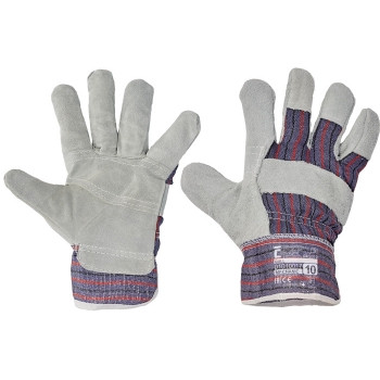 Kombinált védőkesztyű marha hasított bőrből, bélelt tenyérrel, kézfej és mandzsetta pamutból.